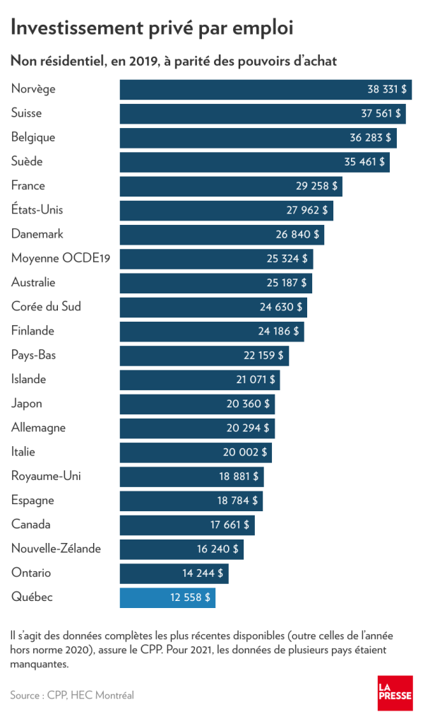 Mais les données sont sans équivoque : le Québec investit significativement moins par travailleur que l’immense majorité des juridictions comparables.
