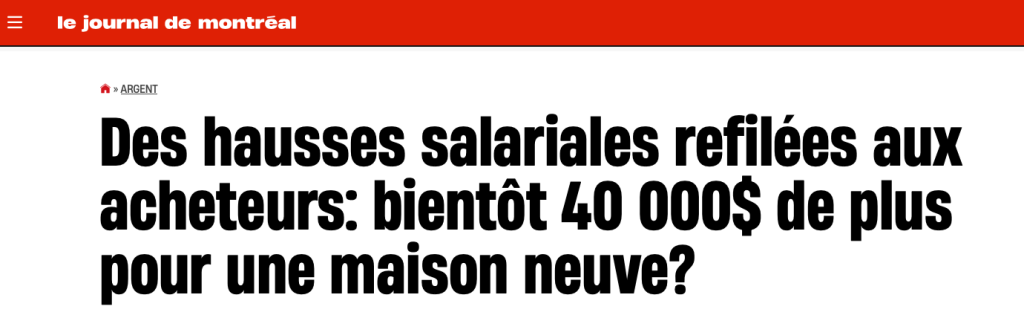 Comme si nos salaires et les lois en vigueur étaient la gale qui s’acharne sur les pauvres promoteurs immobiliers qui n’auront d’autres choix que de mettre sur la table quelques dollars de profits pour assurer la dignité des gens qui se sacrifient, parfois littéralement, pour leur permettre d’en accumuler. Quel dommage.