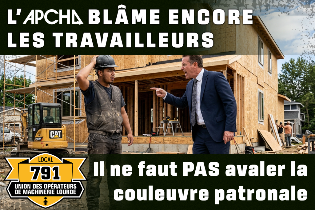 On l’a vu encore et encore, on serait trop gâtés, on serait les coupables, constamment les cibles des critiques — alors que nos hausses salariales ne rattrapaient même pas l’inflation avant la dernière convention. Il appert important de suggérer de trouver d’autres responsables, autrement, vous nous verrez systématiquement répondre, encore et encore. On s’y engage : le respect qu’on mérite, ou des réponses qui vous feront mal paraître comme celle-ci. Le respect, sur les chantiers, et en dehors. C’est un engagement de notre Union.